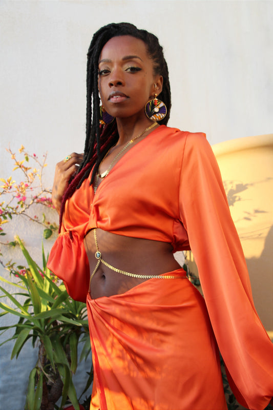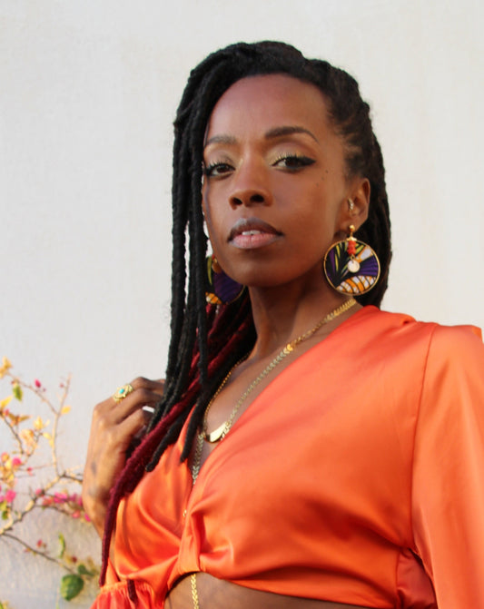 Boucles créole Wax & Leather plaqué Or - Corail Orange