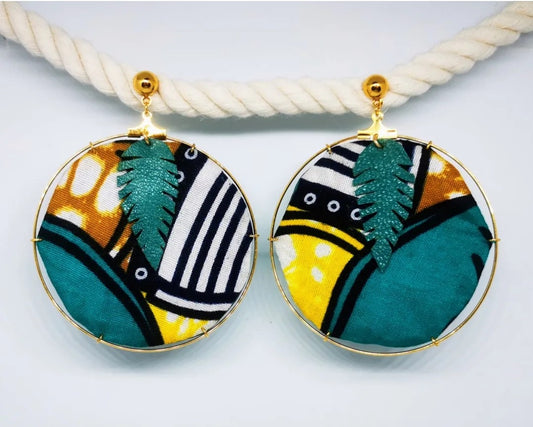 Boucles créole Wax & Leather plaqué Or - Vert/Jaune
